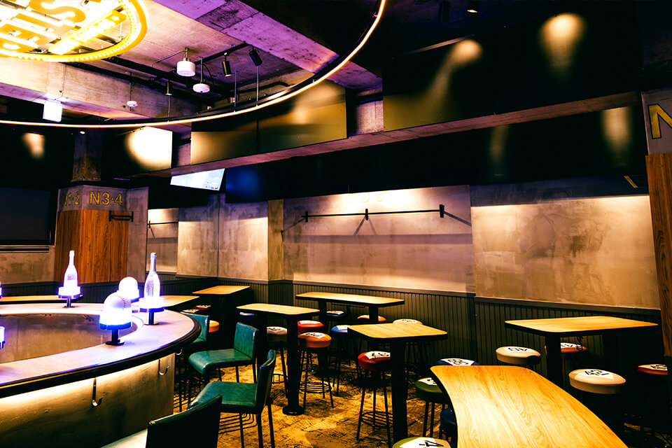 モニター多数、数種類のお席を用意することにより、シーンにあったスタジアムバーの使い方、そして売り子スタッフ全員が元気に皆さんのご注文を伺います。
