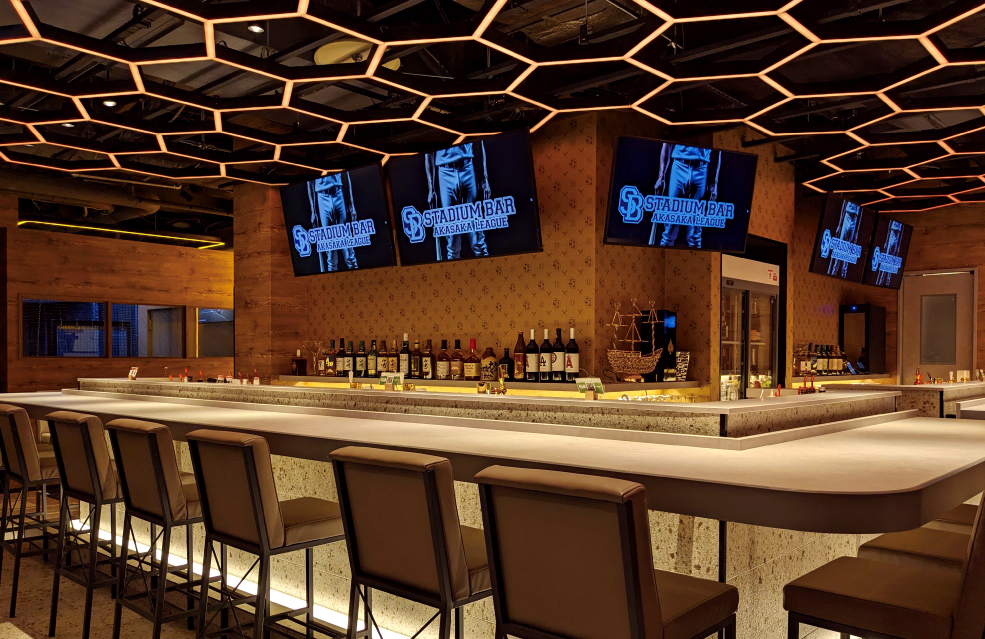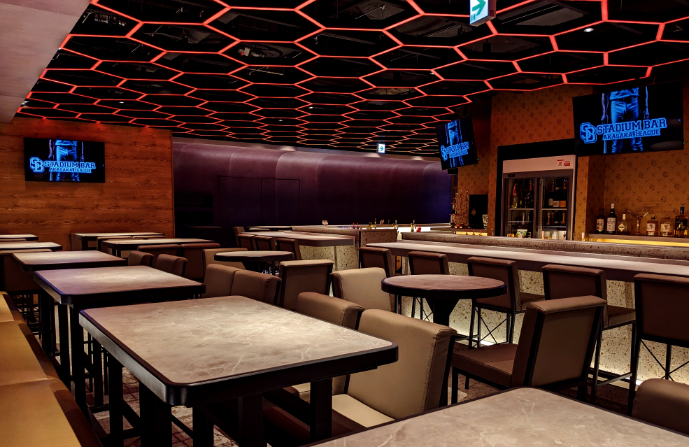 赤坂最大級!‟スタジアム感覚”のコンセプトでまったく新しい大型スポーツBAR、スタジアムバー赤坂リーグ店がOPEN! 多数のモニターと巨大スクリーンで大迫力のスポーツ観戦ができ、他のスポーツバーにはないラグジュアリーな演出でスタジアムさながらの臨場感を味わうことができます。